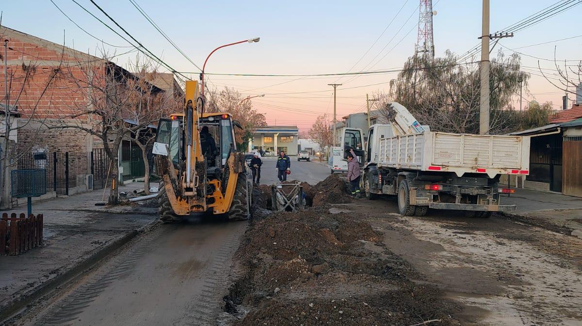 Aguas Rionegrinas informa que avanza a buen ritmo el recambio del colector cloacal de calle Naciones Unidas, una obra clave para mejorar el servicio sanitario en Cipolletti.