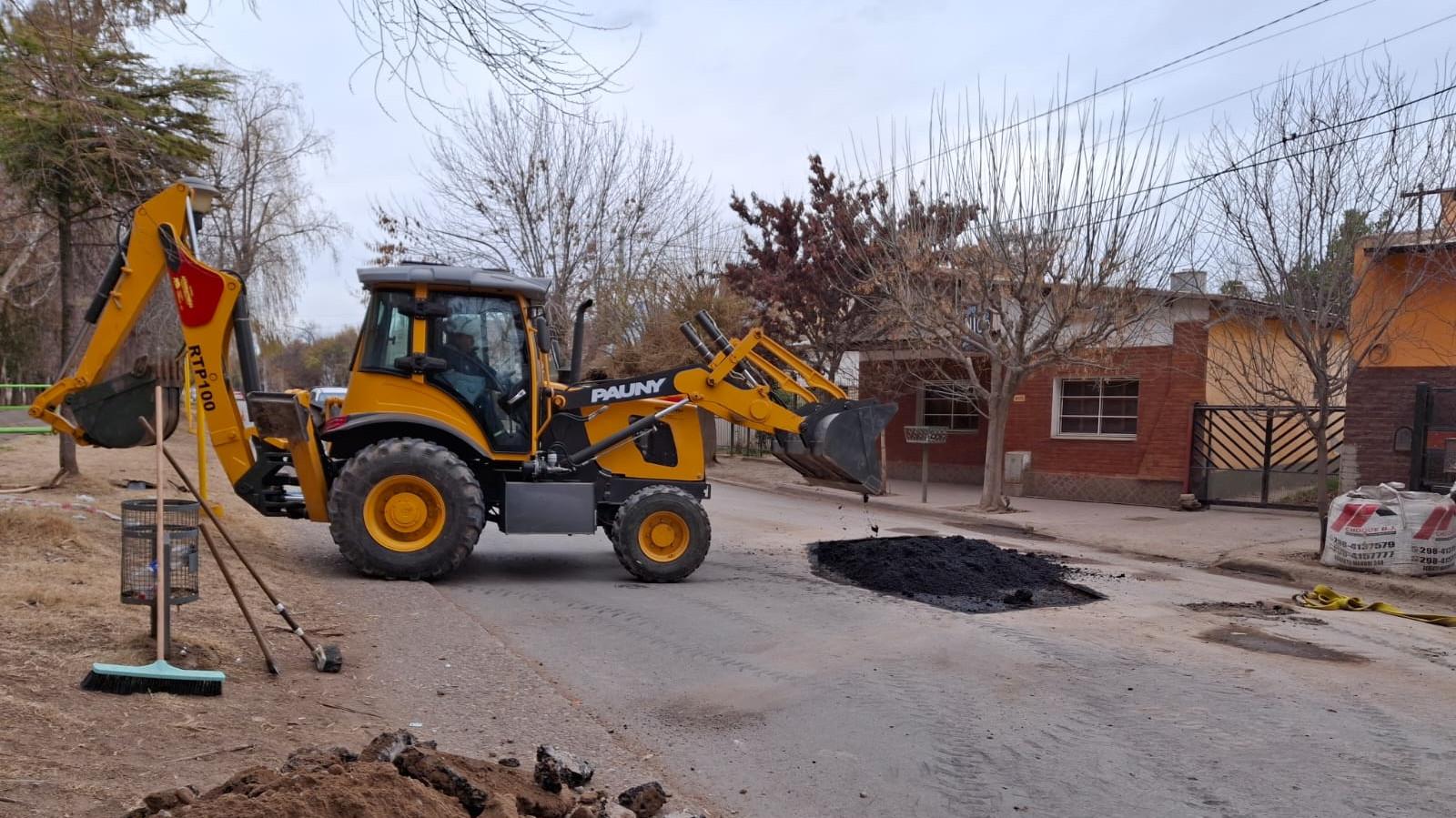 Aguas Rionegrinas puso en marcha un plan de bacheo en Cinco Saltos, con el objetivo de restaurar la calzada en los sectores donde se realizaron trabajos de recambio de cañerías y otras intervenciones sanitarias.